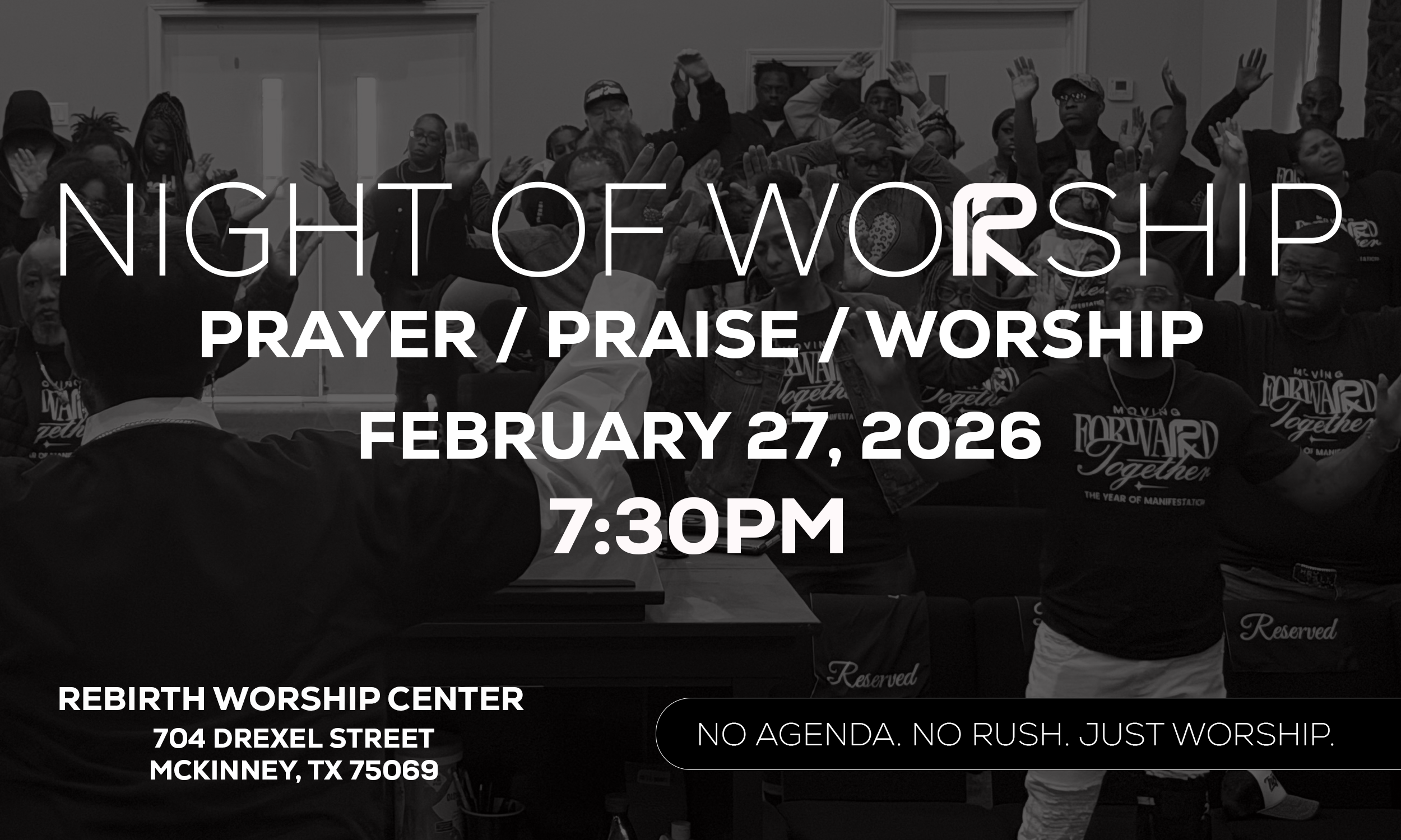 Join us for a powerful Night of Worship—a sacred space for prayer, praise, and wholehearted worship.